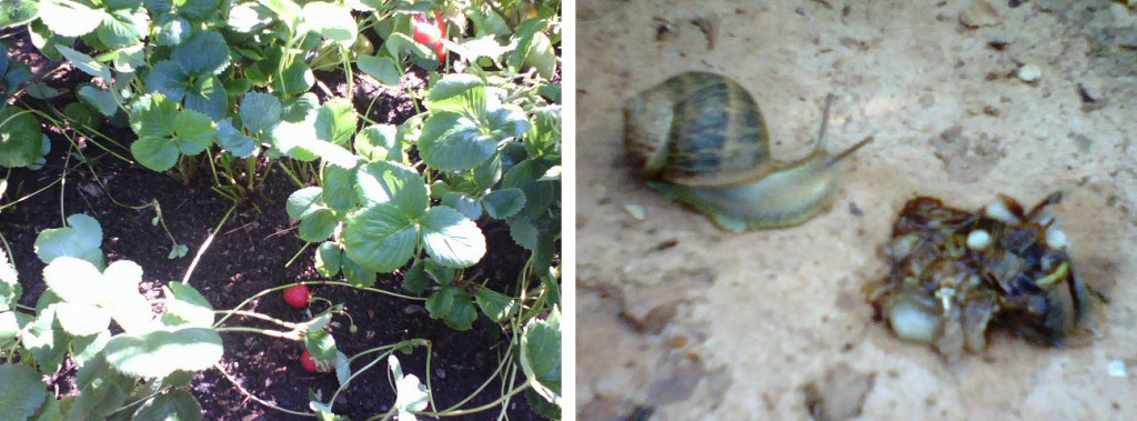 I prune strawberries. I make a safe space to nurture life within the garden sphere. Beneath it all, I find earth.