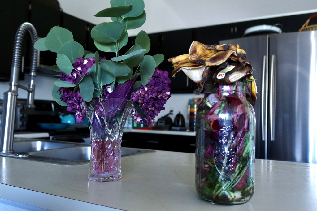 The compost situation is blooming into a beautiful pile of nutrient rich soil. The hummingbird always lingers at the box as it flies by. How sweet!